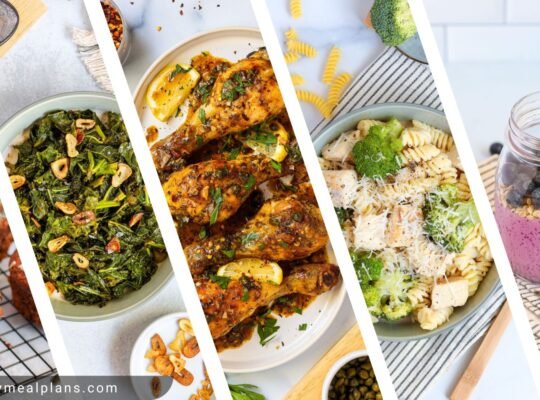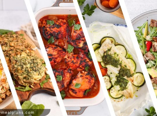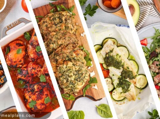 Most meals take 30 minutes or less, leftovers are used on purpose, and snacks are simple and flexible. This is the kind of plan you can actually stick to during a busy week.