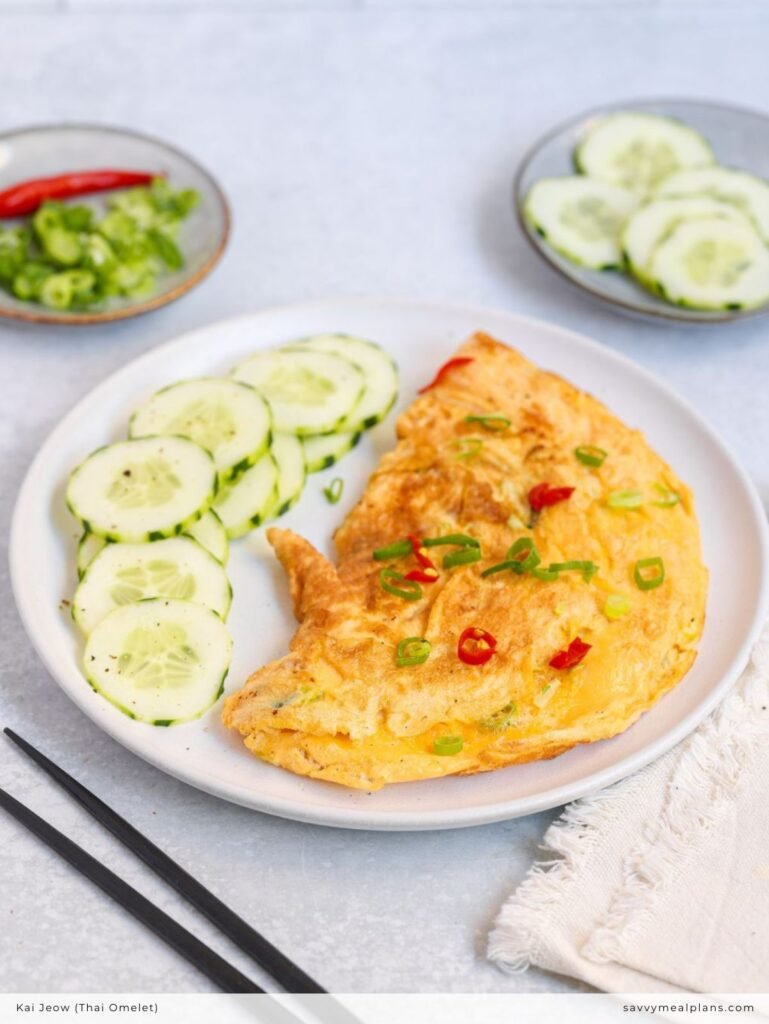 Breakfast: Kai Jeow (Thai Omelet) with cucumber