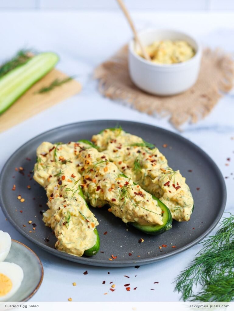 Lunch: Curried Egg Salad Cucumber Boats + fruit
