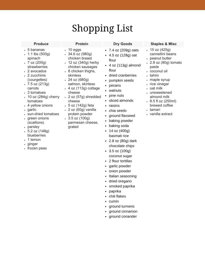 - 🛒 A ready-to-use shopping list for the whole week